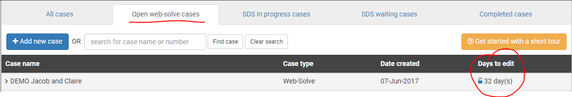 Web solve cases are set up to expire 90 days after you have created them, so we can ensure that your background case data is always fresh. It will also help keep your active case list tidy. You can see how many days you have left to edit a case on the home page.