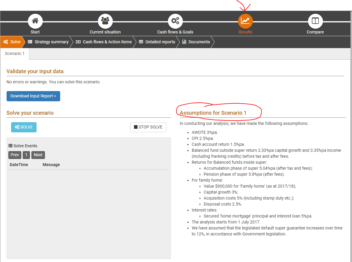 The assumptions that are used in a scenario, are now visible at the Results > Solve step, without you needing to click solve first.