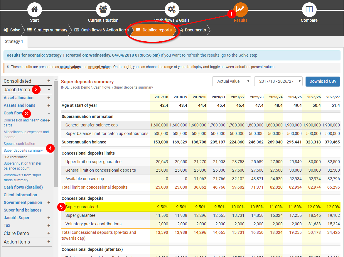 In the report, there is a Super guarantee % line in the 'Concessional deposits' section