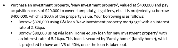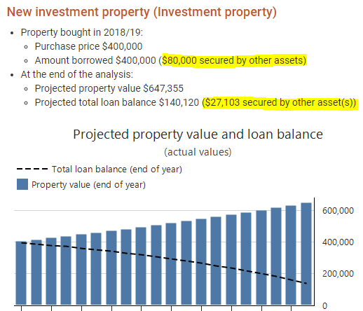 Based on your inputs, you can control the total borrowing to finance the asset, the maximum borrowing for each loan and the LVR of the securing asset and in the results, Pathfinder will ensure that the borrowing keeps within all the restrictions. The results clearly explain the modelling throughout the results, including on the asset and loan summaries: