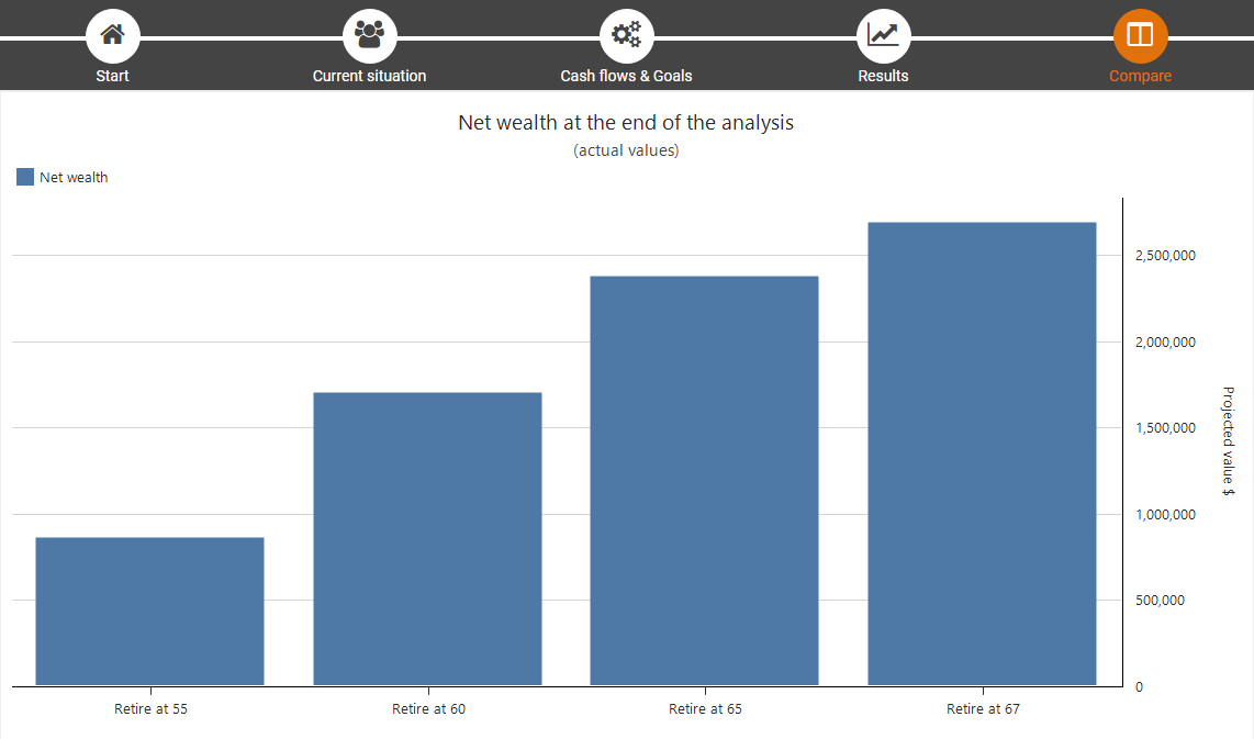 New 'Net wealth at end of analysis' chart at the 'Compare' step