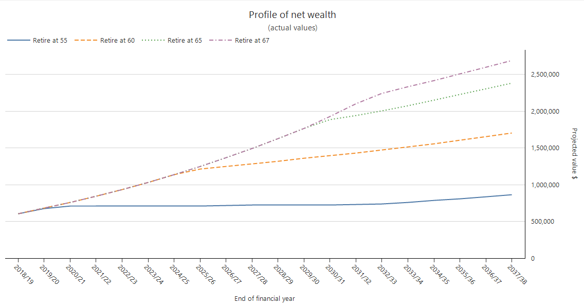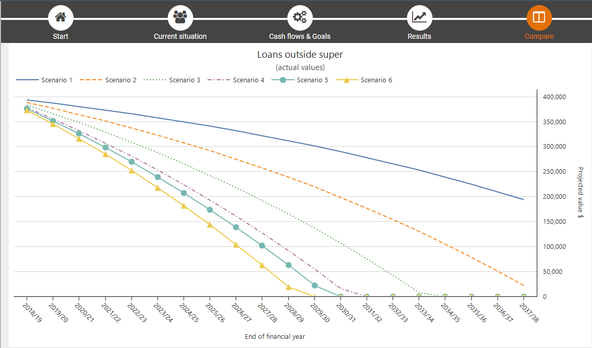 This new chart helps you easily see when loans outside super are paid off (or not) for each scenario.