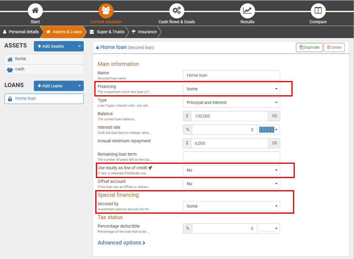 Some fields on Secured loans have been changed to accommodate the new loan features. If you had an existing case with secured loans, you don't need to make any changes, but you may wish to note that previously, we only had one field called Secured by, whereas this release now has two fields: