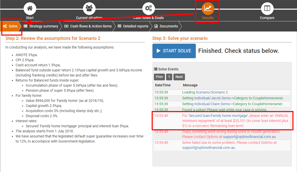 If you've encountered solver error messages that were caused by inconsistencies in the data entry between the loan balance, interest rate, minimum repayment and loan term, then you'll be happy to hear that we've improved the reporting so it you'll find it easier to know what you need to fix, so you can successfully solve.