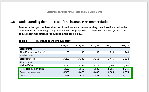 For the 'Insurance premiums summary' detailed reports, there are now lines showing the total premiums paid outside super, inside super and overall, so it's easier to see the total insurance cost. This report appears in the Strategy paper and in SOA foundation document in a section called 'Understanding the total cost of the insurance recommendation.
