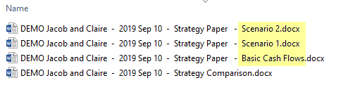 When you download any single-scenario document at the results > Documents step (e.g. Strategy paper, SOA), the scenario name is included, so it's easier to keep organised when downloading documents for multiple scenarios.