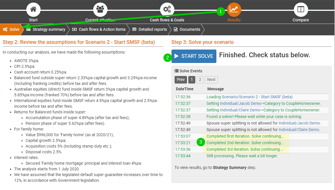 If you have any existing cases with SMSFs in progress, we recommend clicking the Start solve button again for any scenarios where you created results on or before 4 May 2020. This will ensure that all your scenarios are consistent and that all the charts work.