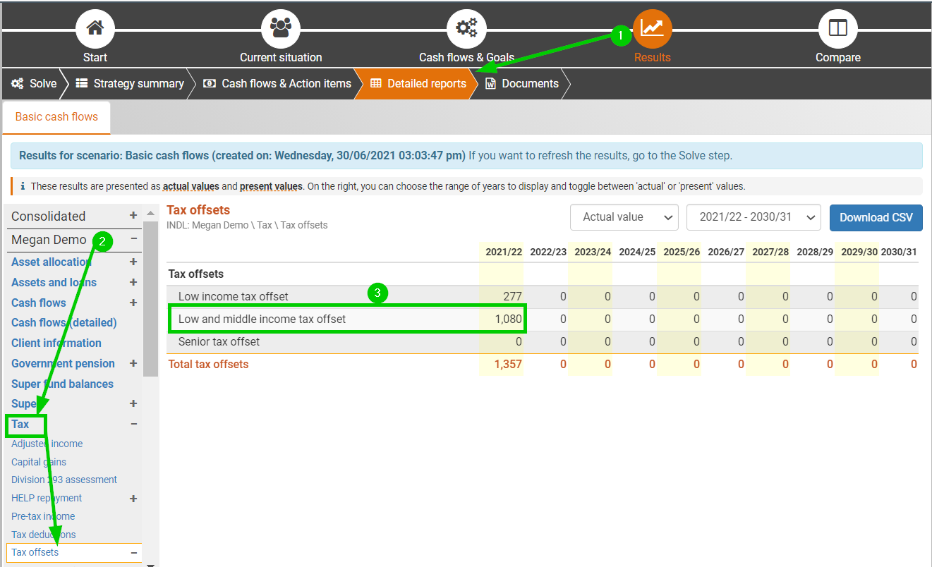 On the 'Tax offsets' report, there is a line for 'Low and middle income tax offset'