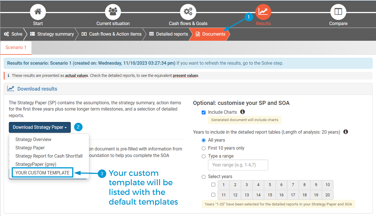 You can have custom templates for Strategy Papers, SOAs, and Strategy Comparison documents.