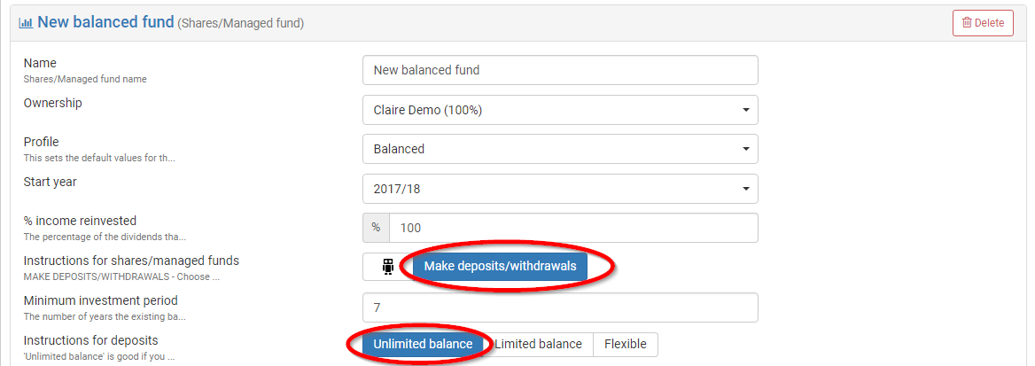 Example of controlling deposits to shares/managed funds