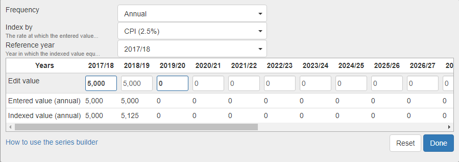 5. If the loan interest rate will be changing, you can use the series builder to adjust the Interest rate field for the relevant year |
