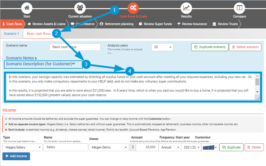 If you have notes for internal use that you don't want your customers to see, then you can use the Scenario notes field.