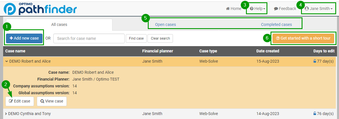 - All cases – all cases you’ve added. The Case type column shows whether it is web-solve or SDS, the Date created column helps you distinguish between cases with the same name. The Days to edit tells you how much time you have to edit the case or whther the case is locked.